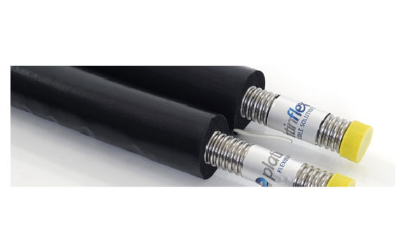 PLATINFLEX en 15266 (tubería de gas CSST) sistemas de mangueras de gas natural, tubería de hierro negro tradicional para una fácil conexión a BSP, BSPT, roscas NPT están unidas con extremos de tubería mecánica de latón o acero inoxidable, corrugado, flexible, semirrígido, consta de una manguera de acero. Se realizan conexiones directas a sistemas y dispositivos de gas.